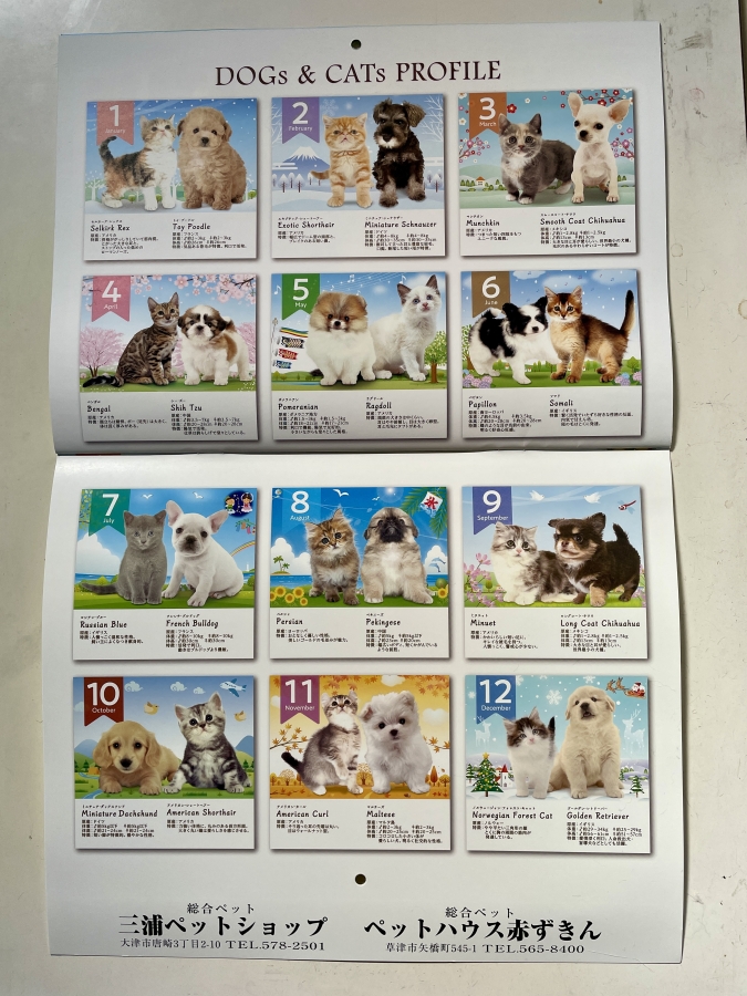 トリミング、ペットホテルのご利用のお客様にカレンダープレゼントさせて頂きます!